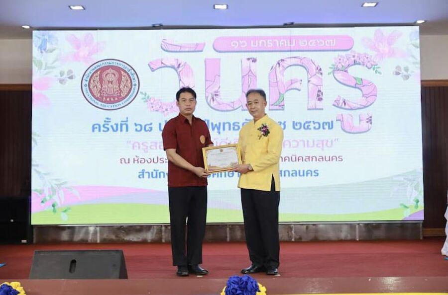ดร.อัชฌพร อังกินันทน์ ผู้อำนวยการวิทยาลัยอาชีวศึกษาเทคนิคธุรกิจสว่างแดนดิน นำคณะครู และบุคลากรทางการศึกษาวิทยาลัยอาชีวศึกษาเทคนิคธุรกิจสว่างแดนดิน เข้าร่วมงานวันครู พิธีสงฆ์ ทำพิธีเชิดชูเกียรติผู้บริหารดีเด่น และครูดีเด่น สำนักอาชีวศึกษาจังหวัดสกลนคร ณ ห้องประชุมห้วยทราย 3 วิทยาลัยเทคนิคสกลนคร